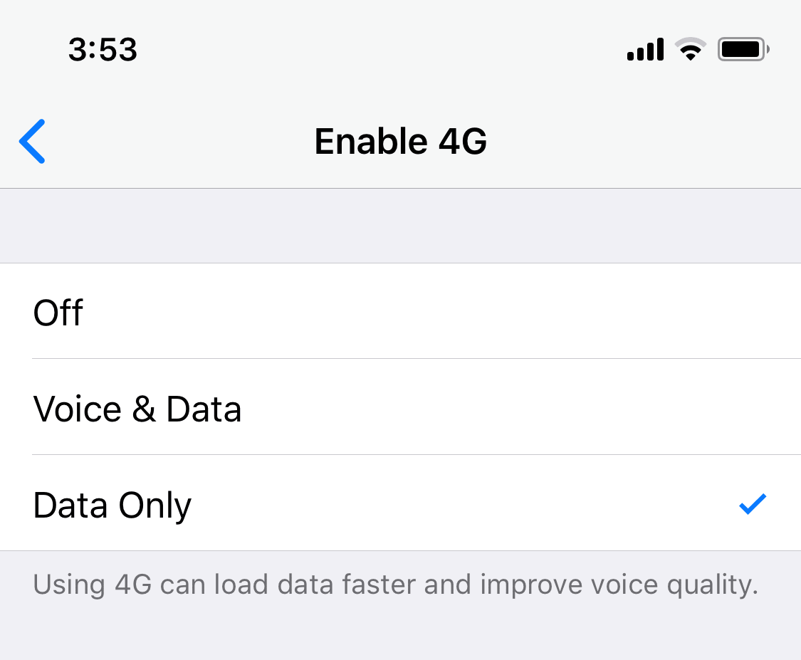 - Tap on the Enable 4G option, and set it to Data Only.