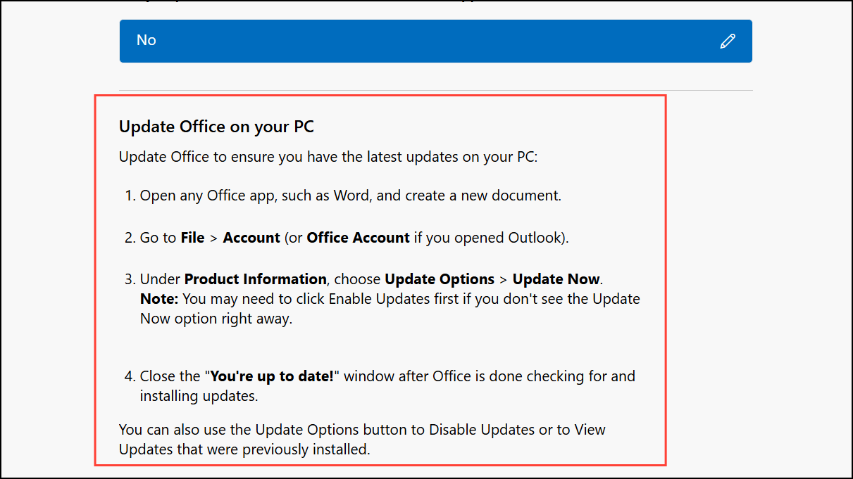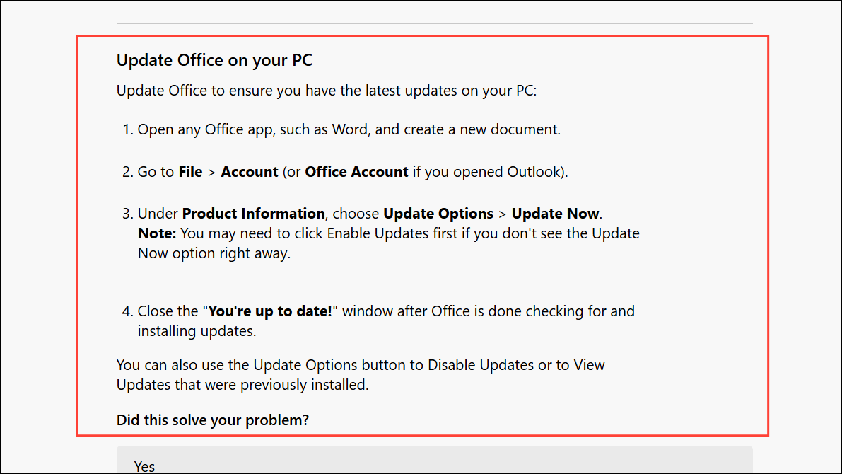 Step 3: The app will prompt you with a series of diagnostic questions. Select your operating system and Office version when asked. If prompted, specify whether you purchased Office via the Microsoft Store. The Get Help app will then suggest actionable steps, such as checking for Office updates or resetting Outlook’s configuration files. After each suggestion, indicate whether the problem is resolved. If not, the app provides additional solutions or escalates to more advanced diagnostics.