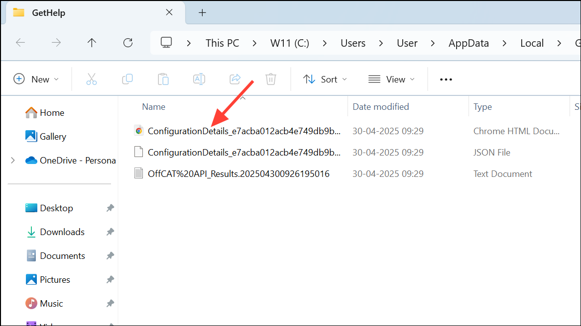 Step 3: Upon completion, the app attempts to open the results in File Explorer. If the report does not appear automatically, navigate to C:\Users\[YourUsername]\AppData\Local\GetHelp to locate the HTML report. This file offers a structured overview of detected issues, configuration summaries, and actionable recommendations.
