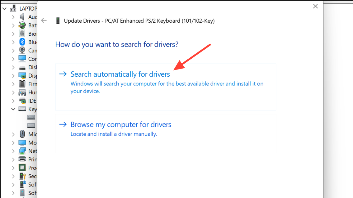 Step 3: In the update window, select Search automatically for drivers. Follow the prompts to install any available updates.