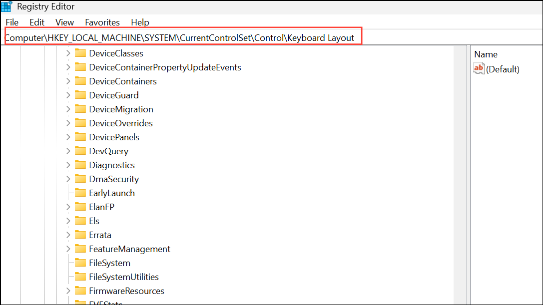 Computer\HKEY_LOCAL_MACHINE\SYSTEM\CurrentControlSet\Control\Keyboard Layout