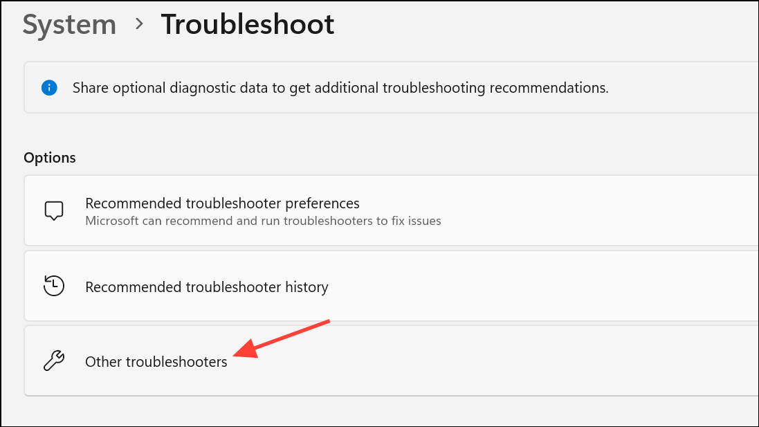 Step 1: Open the Settings app and select System > Troubleshoot > Other troubleshooters.