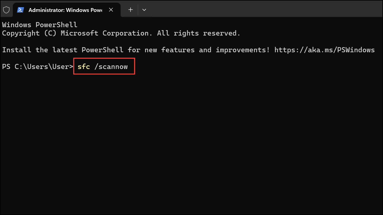 Step 2: Type the following command to scan and repair system files, then press Enter: