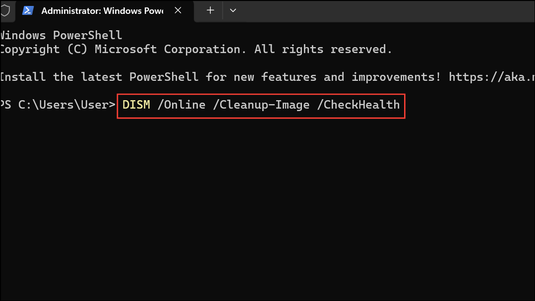DISM /Online /Cleanup-Image /CheckHealth