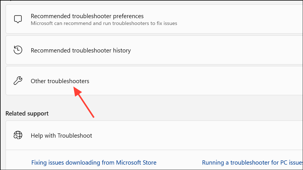 Step 2: Click Other troubleshooters and find Windows Store Apps in the list. Click Run next to it.