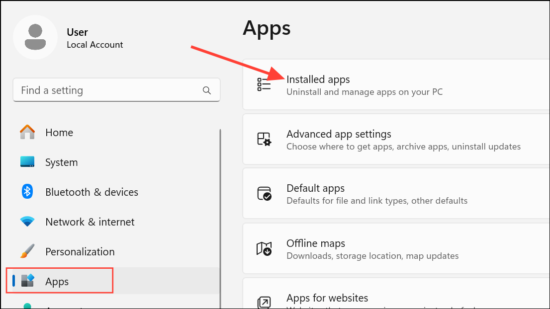 Step 1: Open Settings and go to Apps > Installed apps (or Apps & features on some versions).