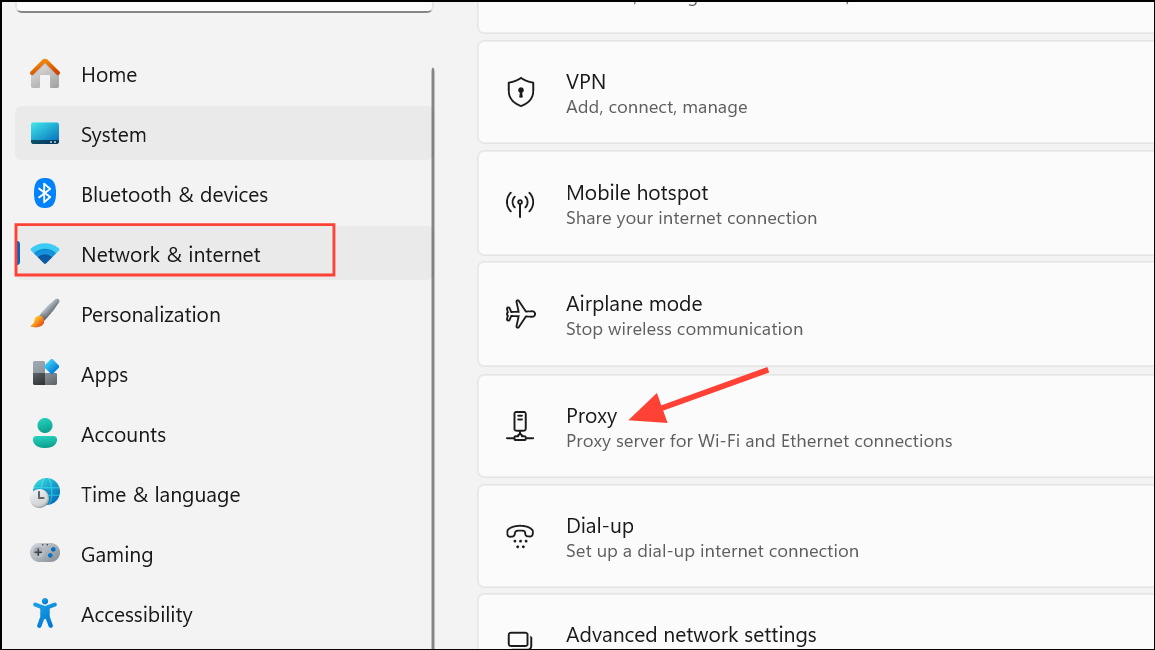 Step 1: Open Settings and go to Network & Internet > Proxy.