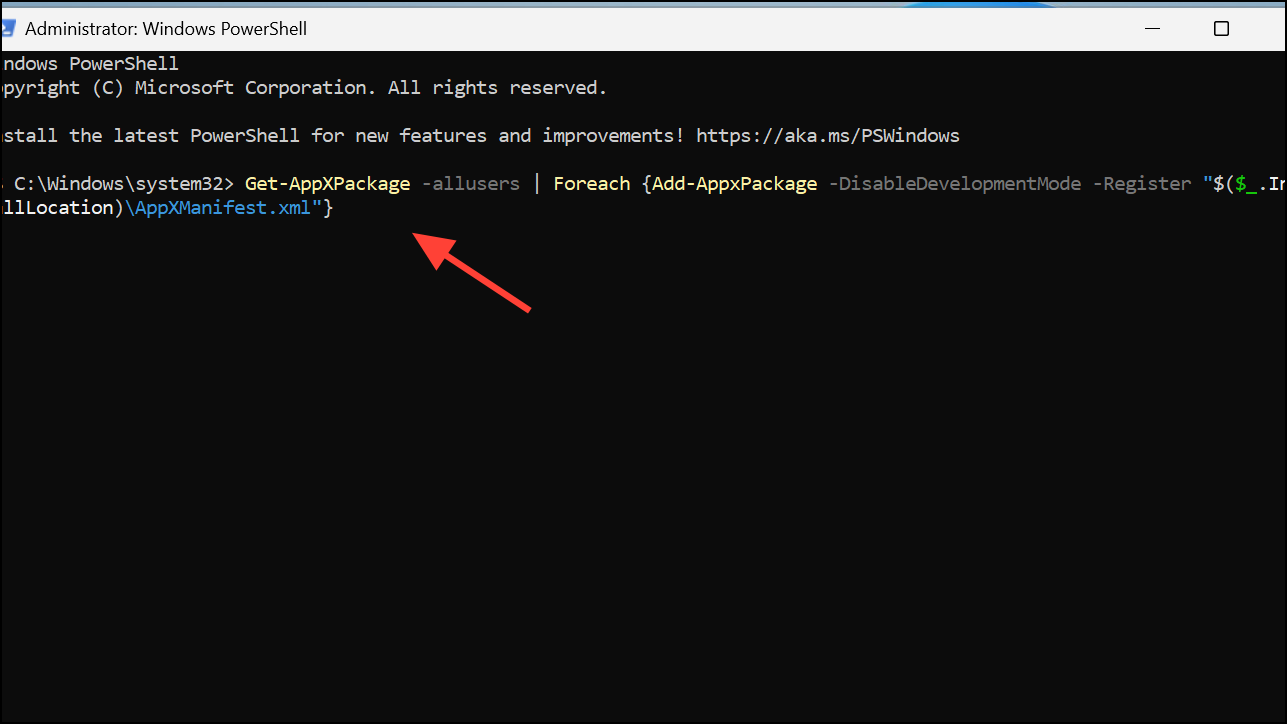Step 3: Wait for the process to finish, then restart your computer. This step reinstates the Store app if it has become unregistered or corrupted.