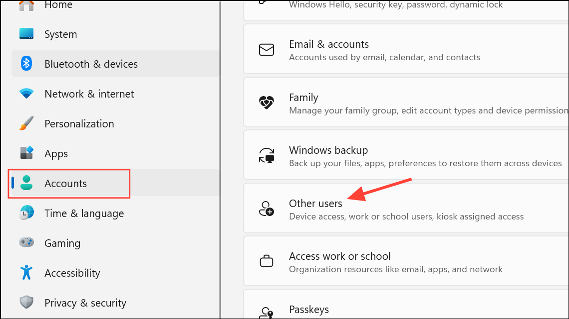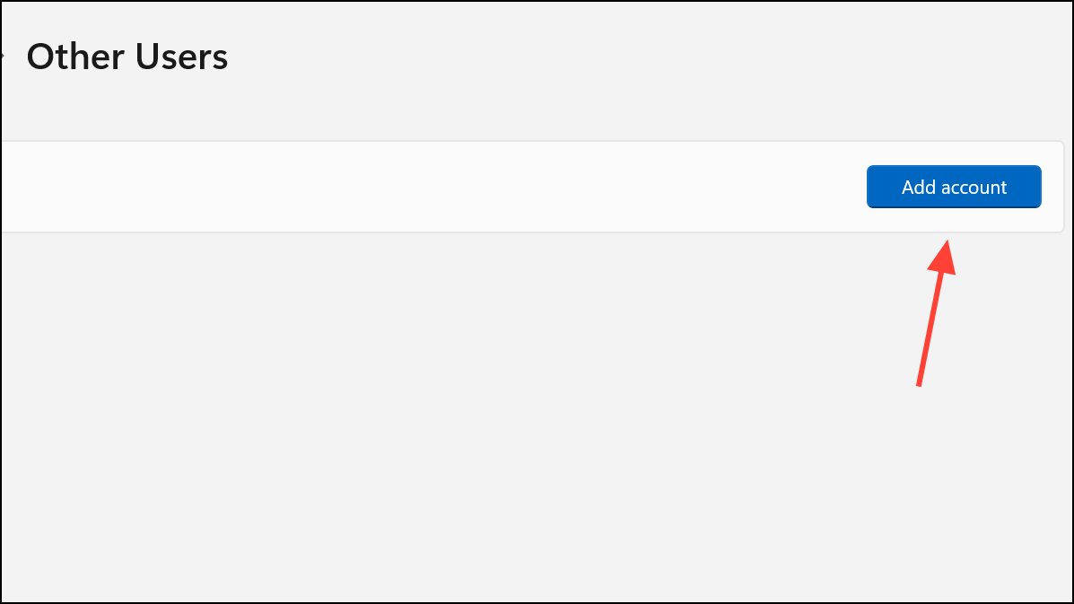 Step 2: Click Add account under Other users and follow the prompts to create a new local account.