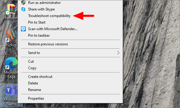 To run it, right-click on the Microsoft Teams desktop icon and select ‘Troubleshoot compatibility’ from the context menu.