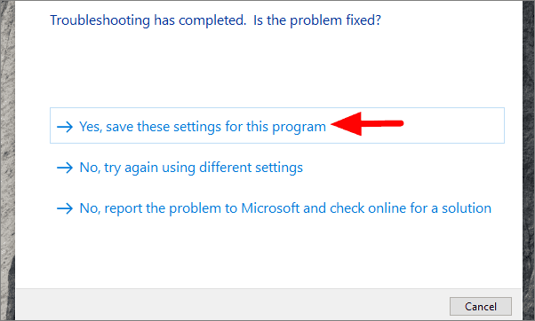 If the issue is fixed, click on ‘Yes, save these settings for this program’. In case it isn’t fixed yet, select the second option and follow the steps.