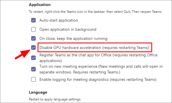If you are now able to properly open the Microsoft Teams app, disable the hardware acceleration to permanently resolve the black screen issue. Many users have reported that disabling hardware acceleration is effective in fixing the problem.