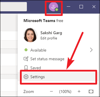 Open the Microsoft Teams desktop app, and click on the âProfileâ icon on the Title Bar. Then, select âSettingsâ from the context menu.