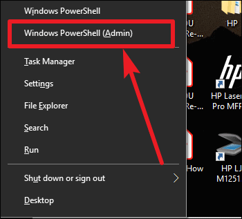 Right-click on the start button and select âWindows PowerShell (Admin)â from the available options on the menu.