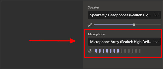 When you select the right device, the dots beside the microphone icon blink as seen in the above image. This way you can tell that you’ve selected the right device as teams is able to access the microphone.