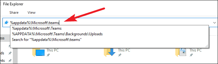 Now open the File Explorer. You can use the keyboard shortcut Windows Logo Key + E to open it. Then, type or copy/ paste %appdata%\Microsoft\teams and press Enter.