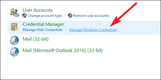 Then under ‘Credentials Manager’, click on ‘Manage Windows Credentials’.