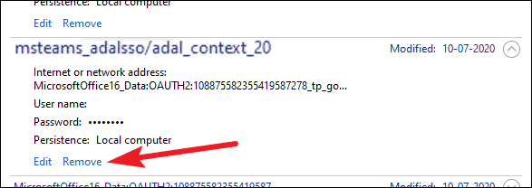 Then find the credentials for ‘MSTeams’ and remove all of them and see if it resolves the issue.