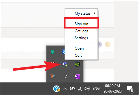 So, when you catch the icon for Microsoft Teams in the system tray, right-click on it and select ‘Sign Out’ from the menu. Once you succeed in hitting the Sign Out button before Teams crashes, the next time Microsoft Teams would load properly and you’ll be able to sign in again.