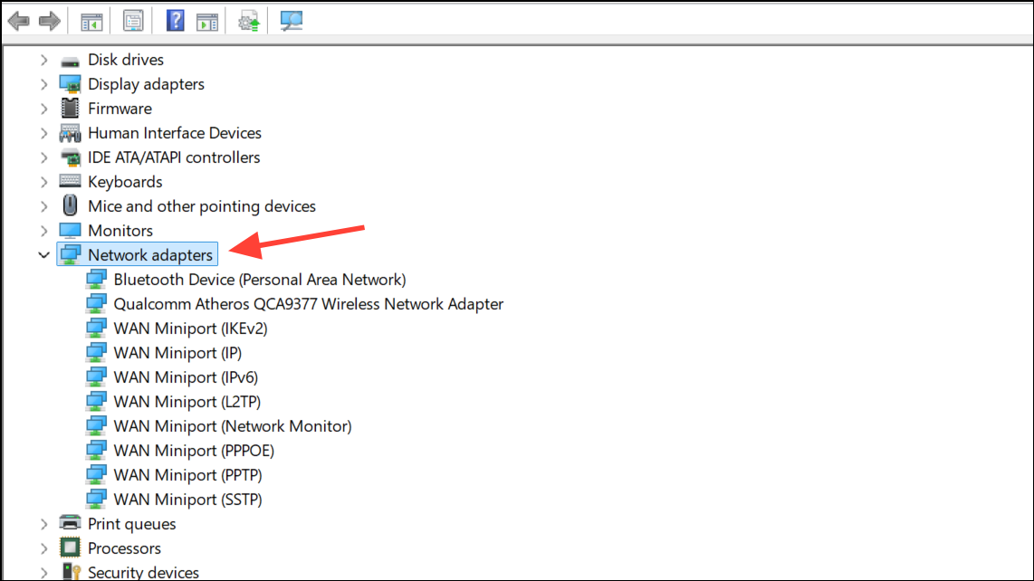 Step 2: Expand the Network adapters section to view installed network devices.