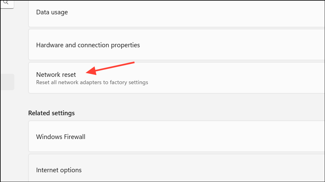Step 2: Scroll down and choose Network reset. Confirm the reset when prompted. This action removes and reinstalls all network adapters and sets networking components back to their original state.