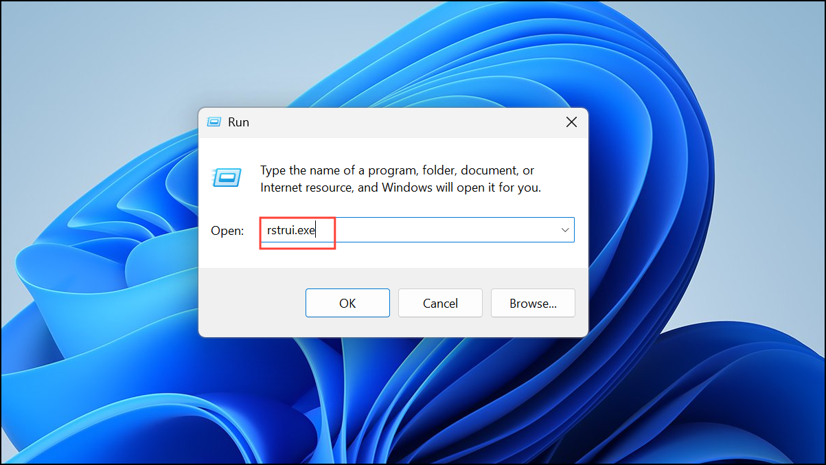 Step 1: Press Windows + R, type rstrui.exe, and press Enter to launch System Restore.