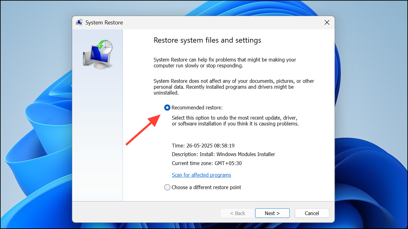 Step 2: Select a restore point created before the blue screen occurred. Follow the prompts to complete the restoration process. This will roll back system files and settings, potentially resolving network issues introduced by the crash.