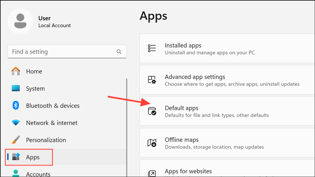Step 1: Press Windows + I to open Settings, then go to Apps > Default apps.