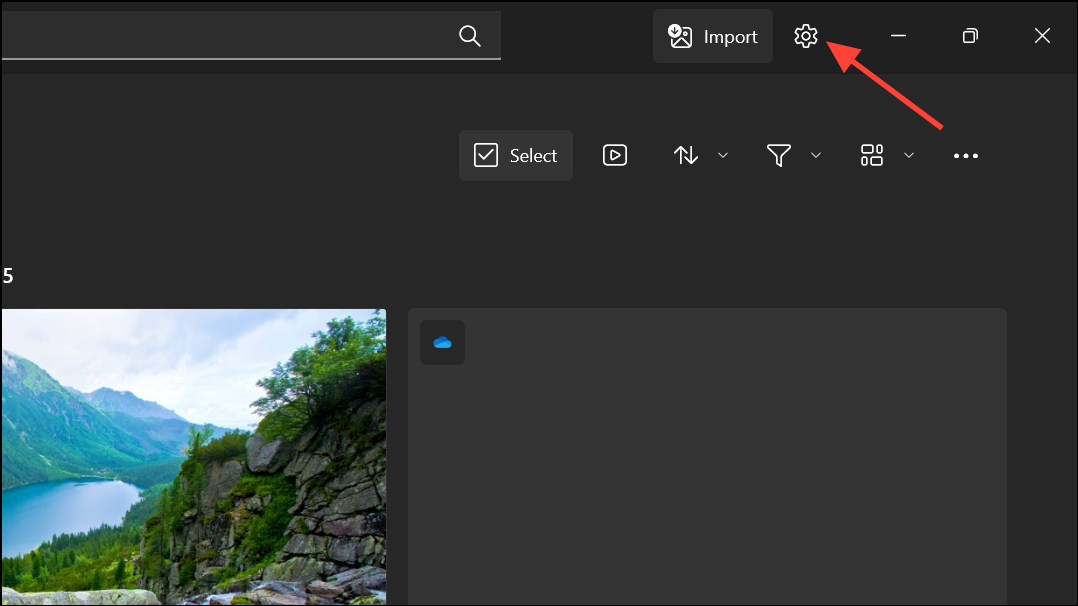 Step 2: Click the gear icon in the upper-right corner to access the Photos app settings.