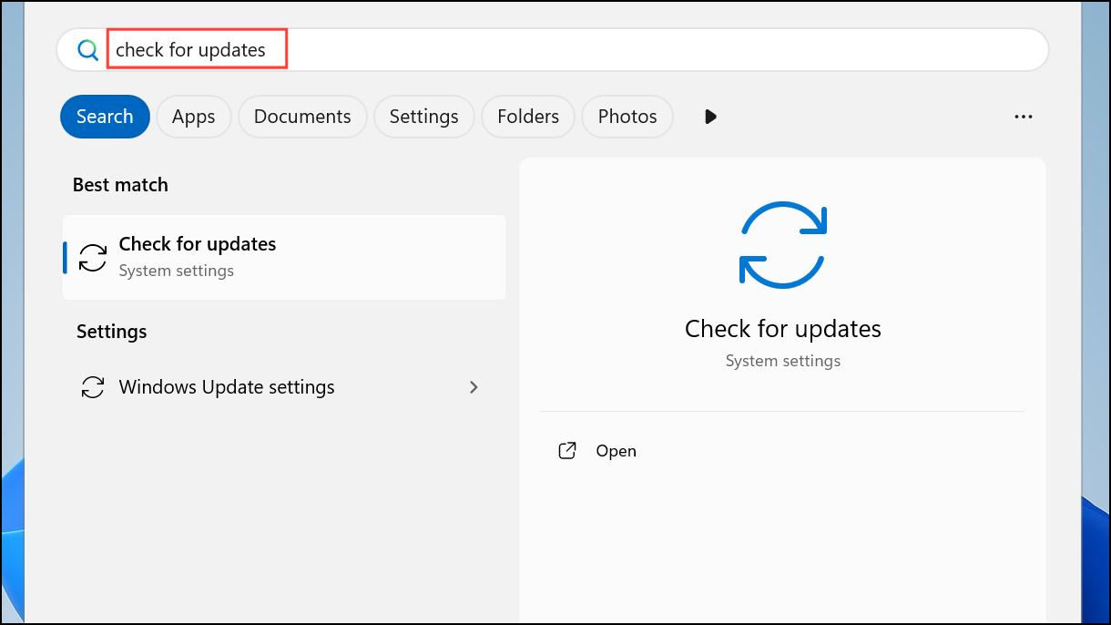Step 1: Press the Windows key, type Check For Updates, and press Enter to open the Windows Update settings panel.