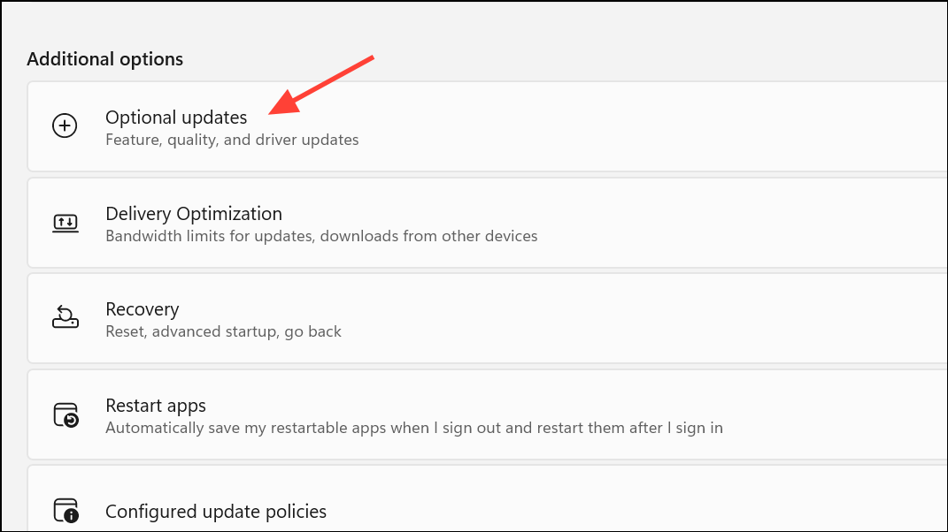 Step 2: Click Advanced Options, then select Optional Updates. Review any available updates, including cumulative or feature updates that may address app compatibility issues.