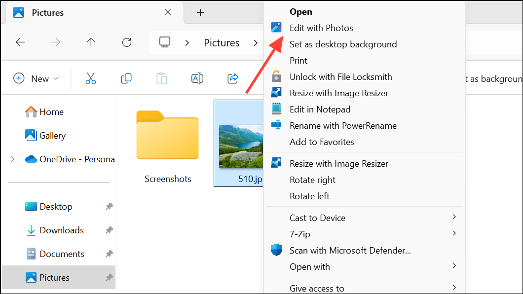 Step 1: Right-click the image file in Windows Explorer and select Edit with Photos instead of double-clicking or using Open.