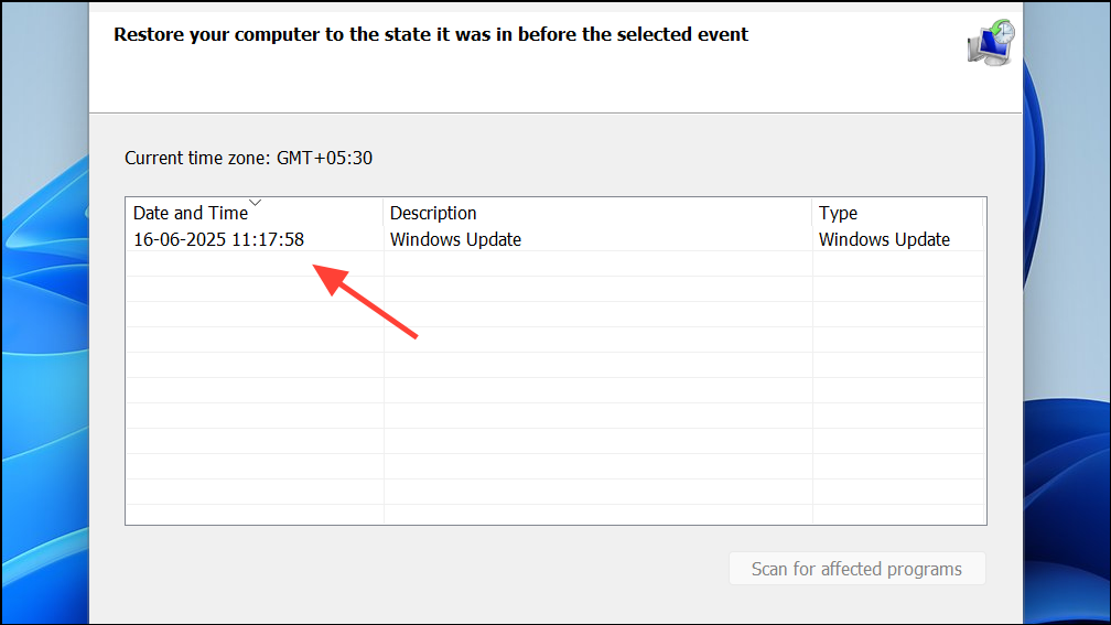 Step 2: Select a restore point dated before the error began appearing, then follow the prompts to revert system files and settings to that date.