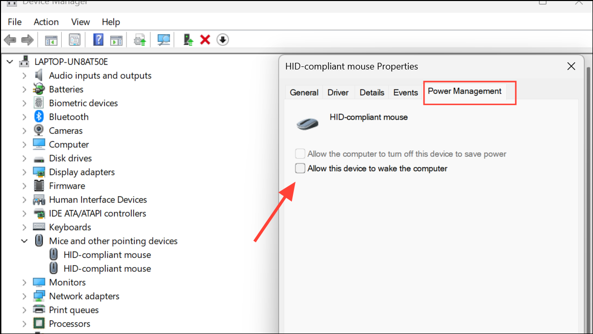Step 3: Go to the Power Management tab. Ensure the box labeled Allow this device to wake the computer is checked. Click OK to apply. Repeat for all relevant devices.