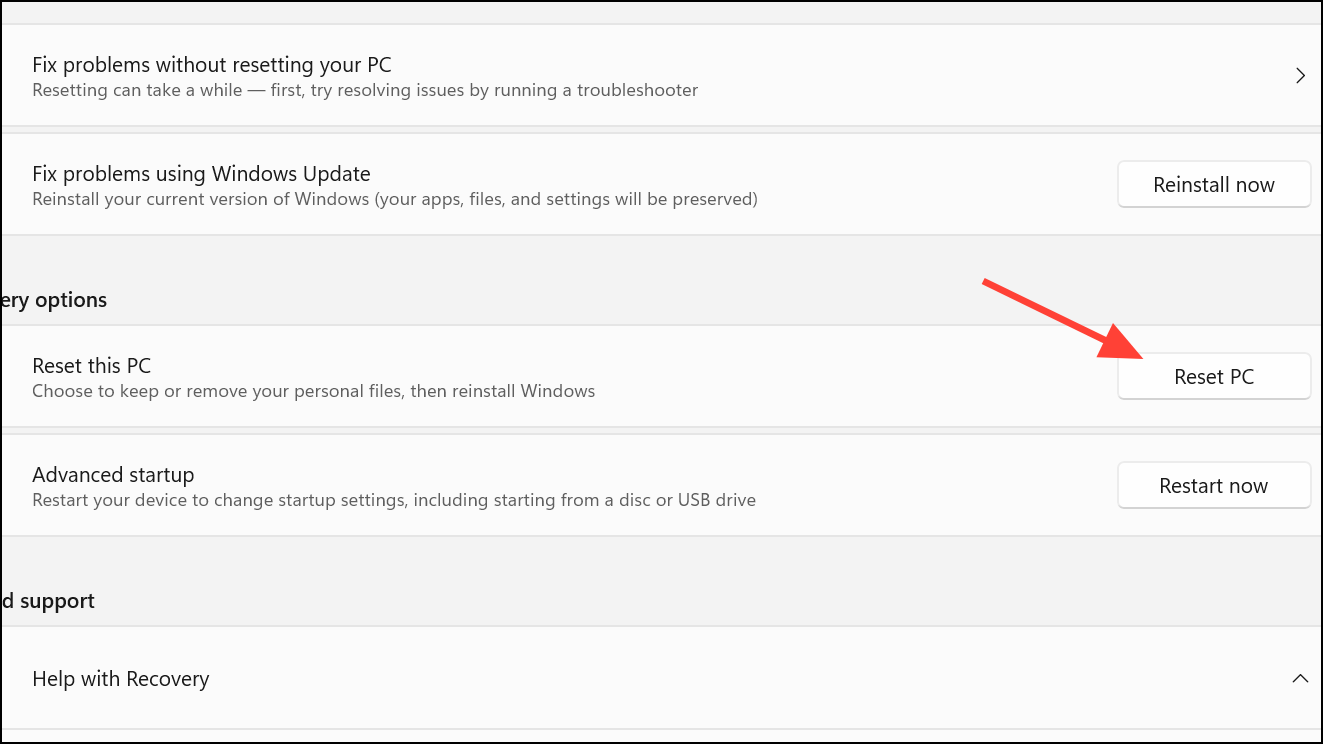 Step 3: Scroll down and use the Restart button under Restart your PC to reboot and refresh the cache.