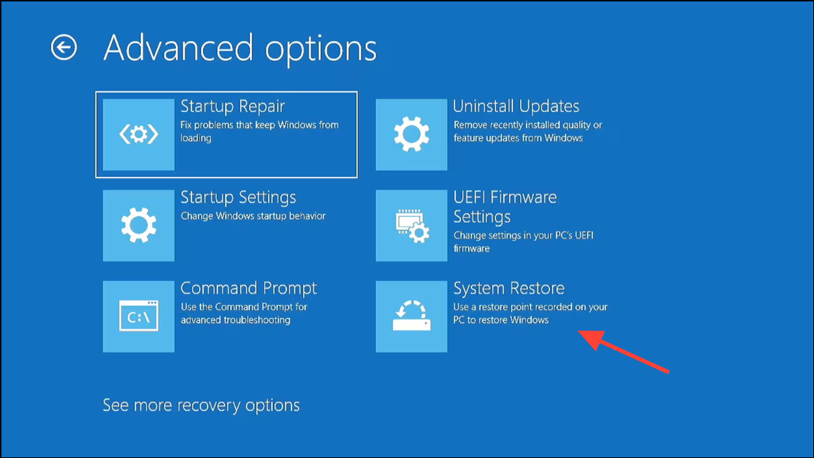 Step 1: In the Windows Recovery Environment, select Troubleshoot > Advanced options > System Restore.