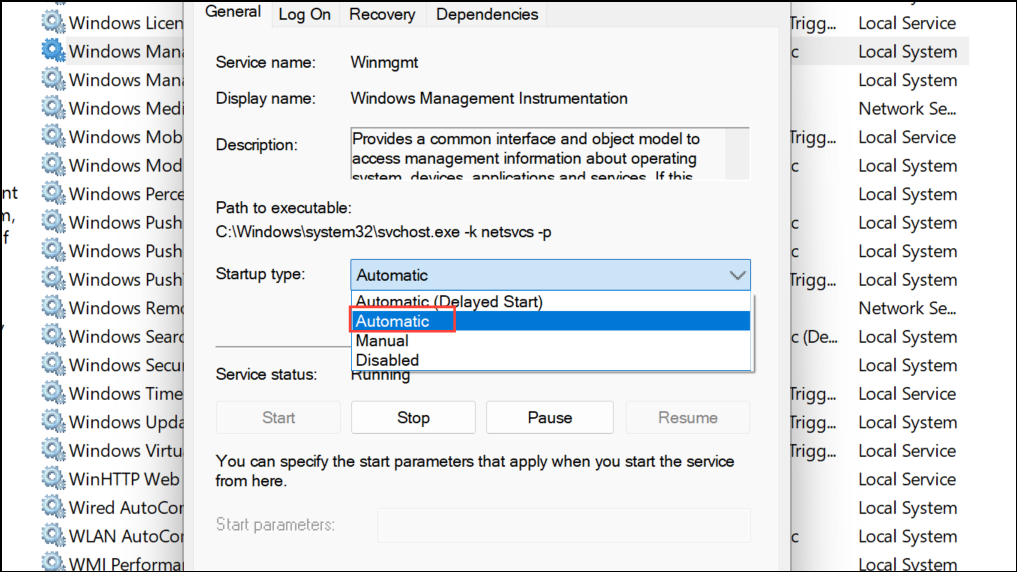 Step 2: For each service, right-click and select Properties. Ensure the Startup type is set to Automatic or Manual (not Disabled). Click Start if the service is stopped. This restores essential services required for Services.msc to function.
