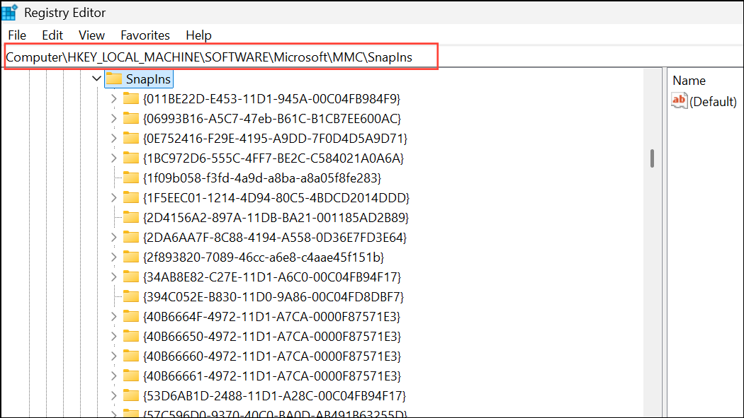 HKEY_LOCAL_MACHINE\SOFTWARE\Microsoft\MMC\SnapIns