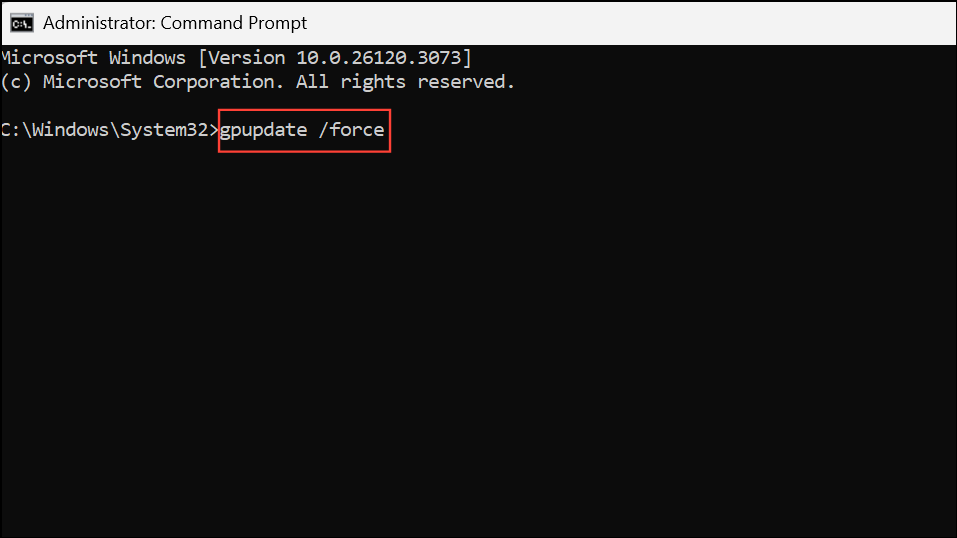Step 2: Enter the following command to force a policy update: