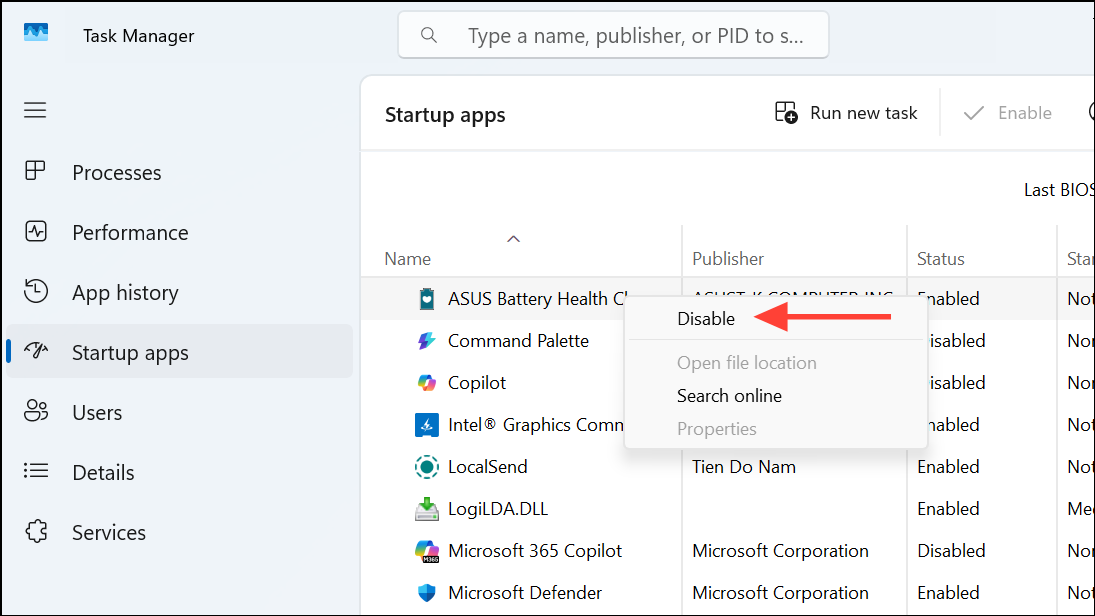 Step 3: Right-click on any program you do not need immediately after boot and select Disable. Leave essential programs enabled, such as antivirus or system utilities you rely on.