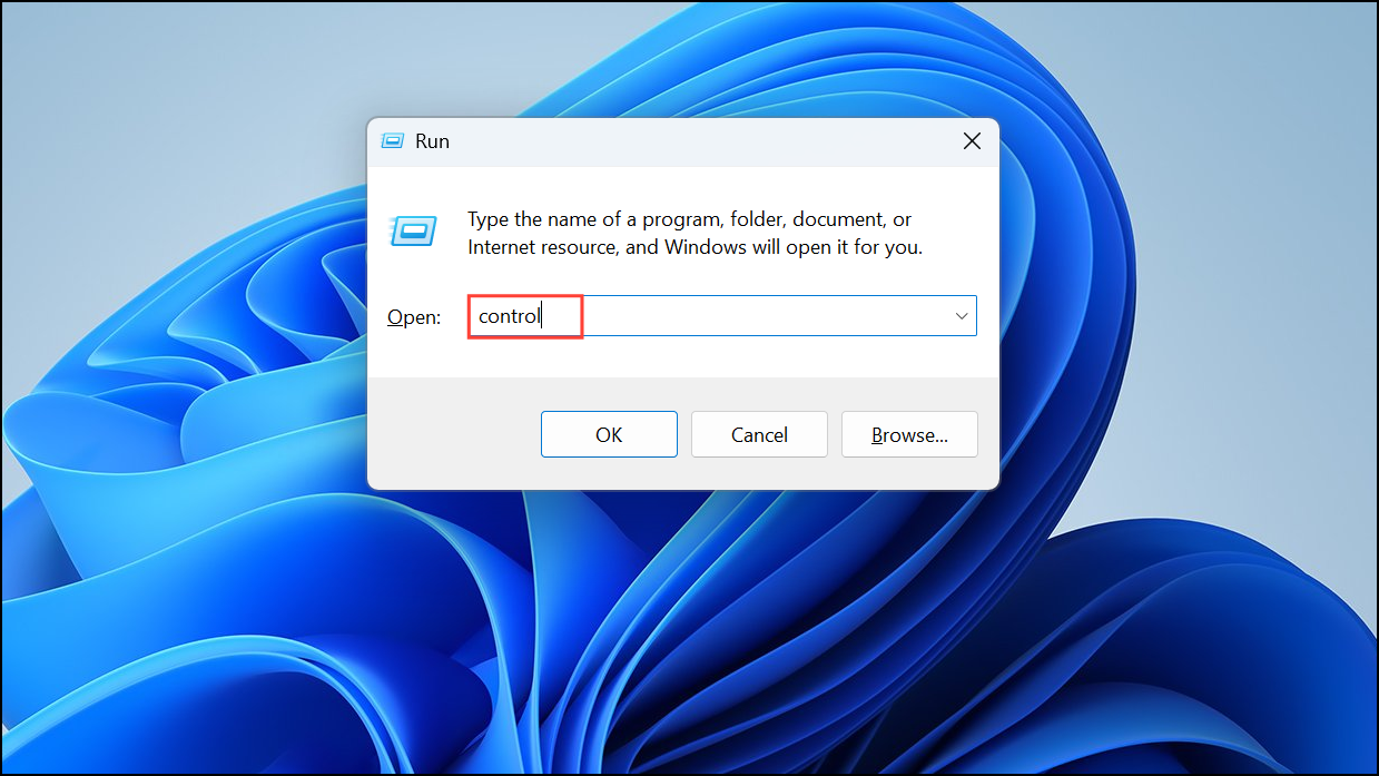 Step 1: Press Windows key + R, type control, and press Enter to open Control Panel.