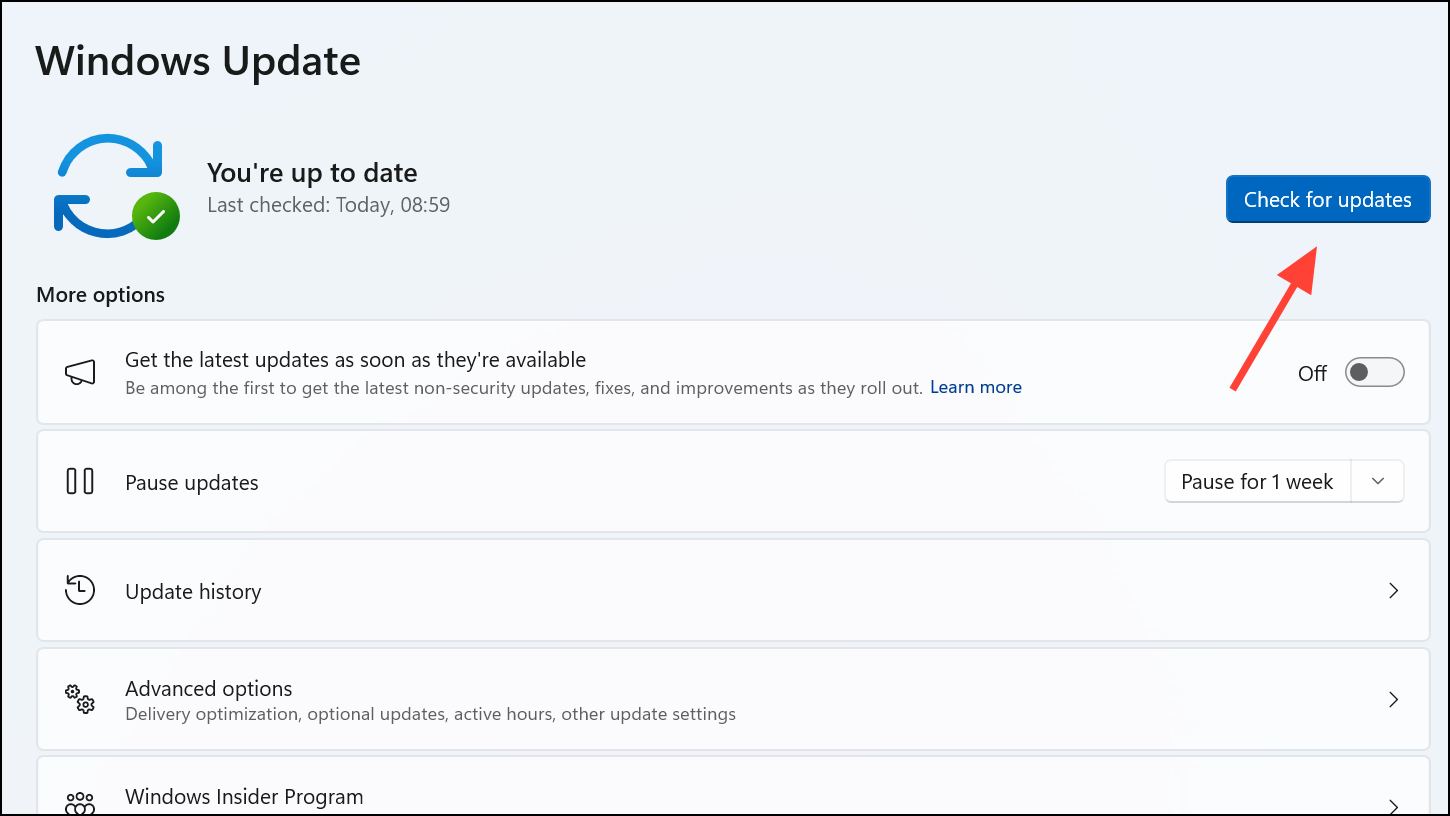 Step 2: Click Check for updates and install any available updates for Windows 11.