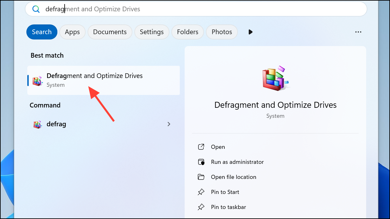 Step 1: Search for Defragment and Optimize Drives in the Start menu and open it.