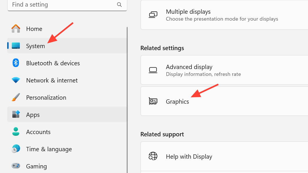 - Windows: repeat Settings > System > Display > Graphics for each game’s