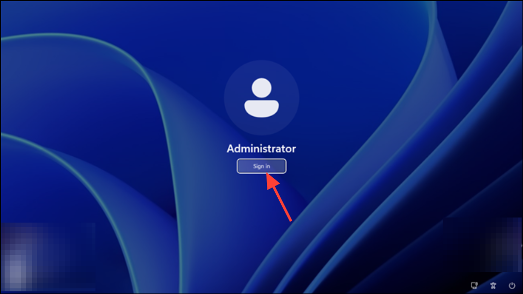 Step 7: On the sign-in screen, you should now see the "Administrator" account as an option. Click it to log in. By default, this account has no password. Once logged in, you can restore administrative privileges to your original user account through the Control Panel or Computer Management settings.