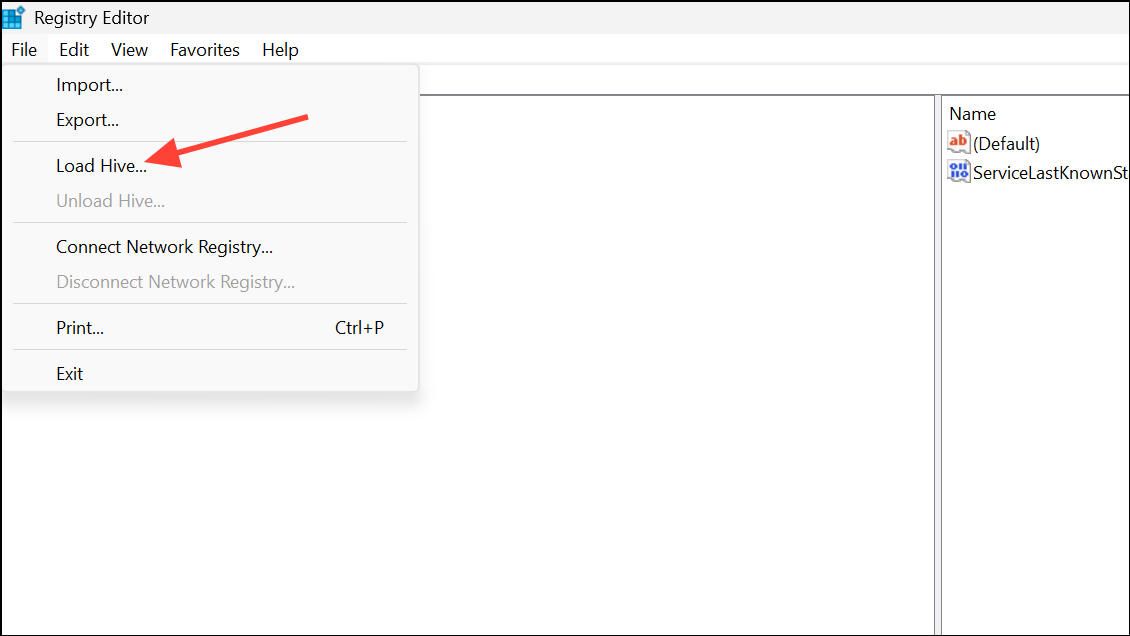 Step 14: In the left pane, click on the TEMP_SAM key you created earlier. Go to the File menu and select Unload Hive.... Confirm when prompted.