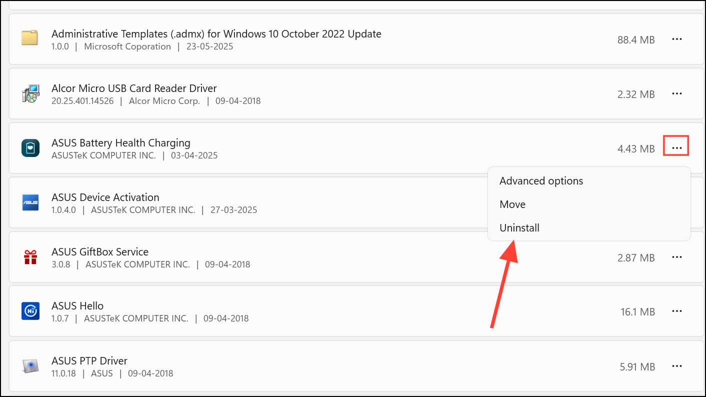 Step 2: Sort the list by installation date or manually review recent additions. Click the three-dot menu next to suspicious apps and select Uninstall.