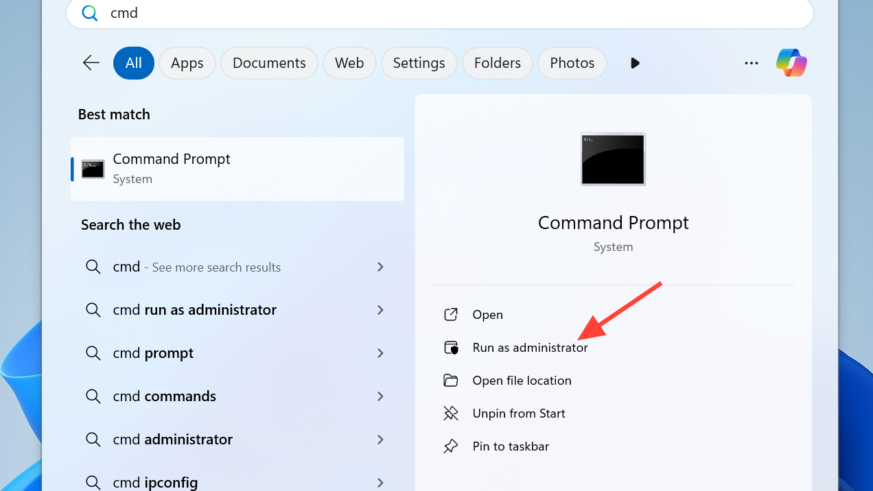 Step 1: Press Windows, type cmd, right‑click “Command Prompt”, and select “Run as administrator”. Confirm the UAC prompt.