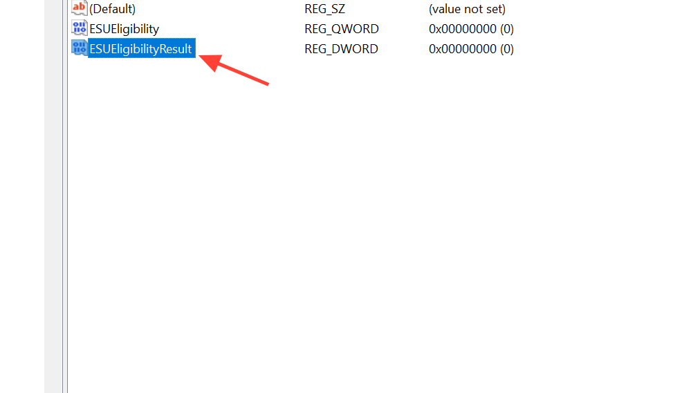 Step 2: Name this value ESUEligibilityResult and press Enter.