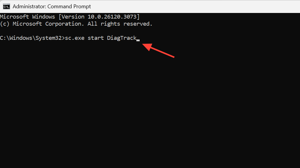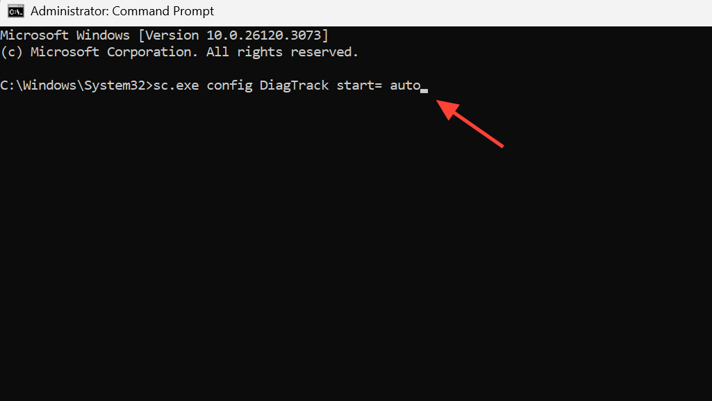 Step 2: In the Command Prompt window, run this command to set the Connected User Experiences and Telemetry service (DiagTrack) to automatic start: